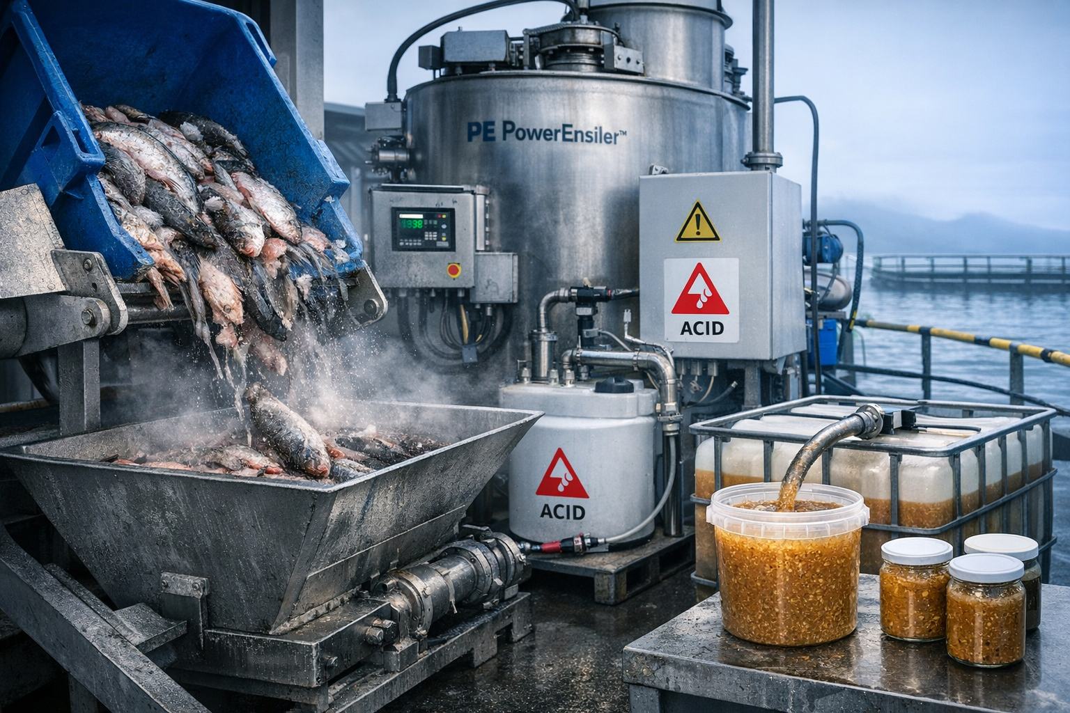 PowerEnsiler is a complete ensiling solution designed to improve biosecurity and process stability in aquaculture. It processes fish and by-products quickly while ensuring controlled pH, consistent silage quality, and reliable operation in demanding environments.