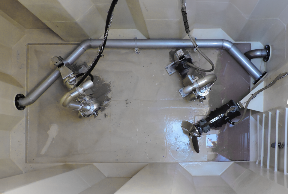 Here, a submersible mixer is used